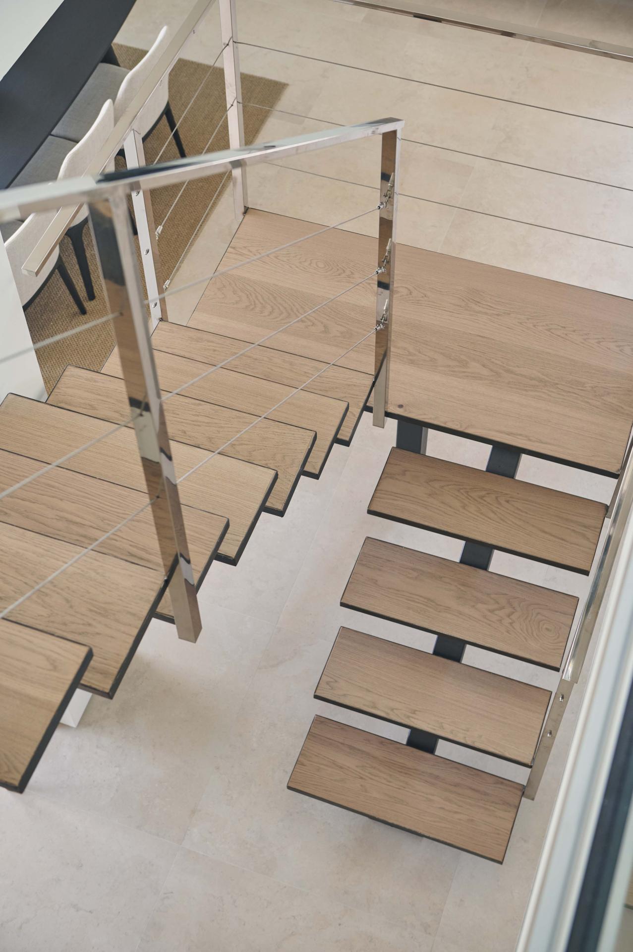 “At the beginning, it was two apartments,” Claudio explains. “We had to change a lot of the structure, especially with many pillars in between. The staircase was particularly difficult to design while keeping the space open and elegant.”