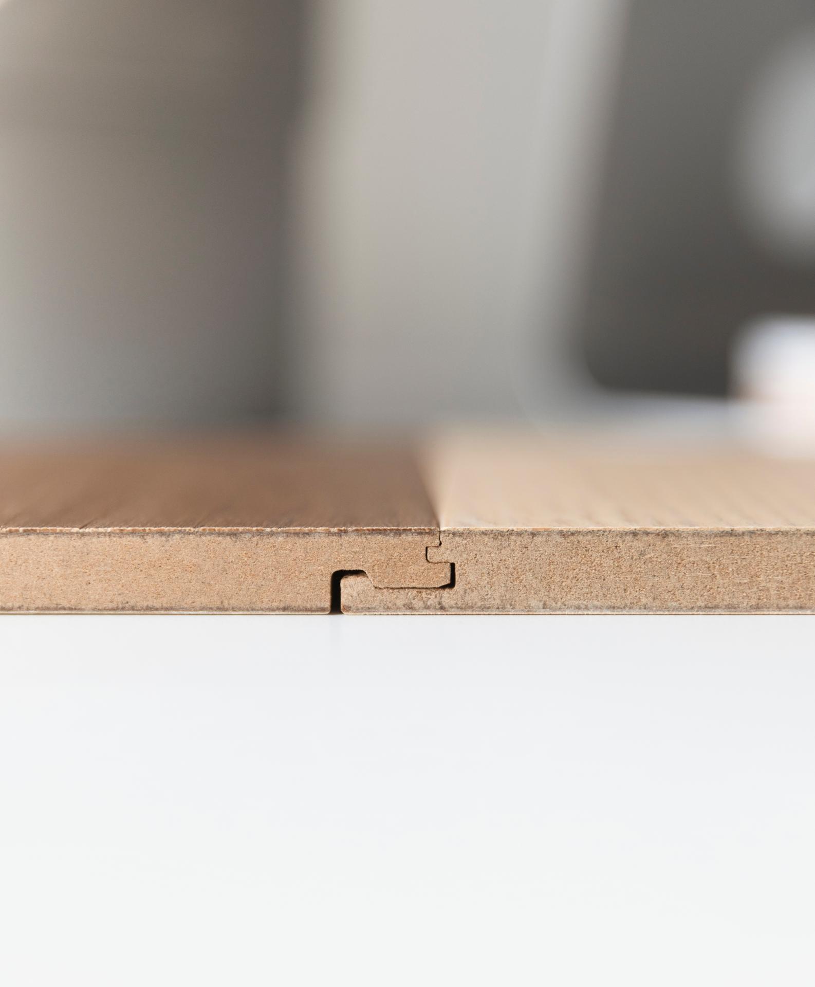 In 2023, we also introduced Small, Medium and Large sizes. These smaller panels, which are 9,2 mm thin, are easier to transport and provide more creative freedom. Perhaps you want to enhance the sense of space with XXL planks in a living room but choose smaller panels in a bedroom.